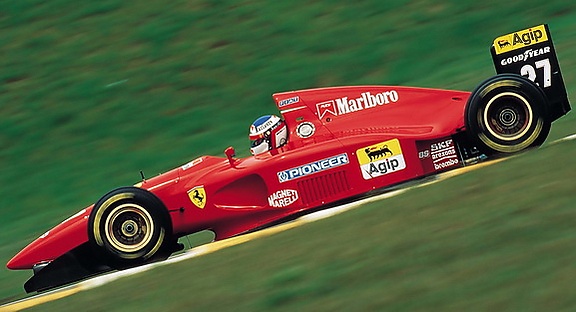 Эта машина вывела Ferrari на верную дорогу после нескольких слабых сезонов в начале 90-х. Герхард Бергер и Жан Алези подтвердили конкурентоспособность автомобиля в течение двух сезонов несколькими подиумами и четырьмя поул-позициями. Машина была крепкой и конкурентоспособной, хотя невезение ограничило число побед по одной для Бергера (Гран-при Германии 1994 г.) и Алези (Гран-при Канады 1995 г.)