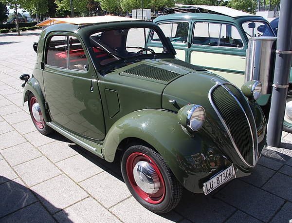 В 1930-50-х Fiat Topolino был одним из самых миниатюрных крупносерийных автомобилей в мире. Запущенные в производство в 1936 году, три модификации Topolino производились до 1955 года с небольшими изменениями (рестайлинг в 1949 году). Автомобиль оснащался миниатюрным четырехцилиндровым двигателем с рабочим объёмом 569 см³ и водяным охлаждением термосифонного типа, смонтированным перед передней осью. Радиатор был расположен позади двигателя, и за счет этого удалось ощутимо «скосить» переднюю часть автомобиля. Это давало отличный обзор для водителя.[1].