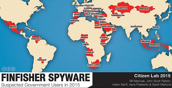- В 2015 году FinFisher использовалась в рамках программы «Fungua Macho» (Уганда) для слежки за оппозиционной партией «Форум за демократические перемены» (Forum for Democratic Change)[27].