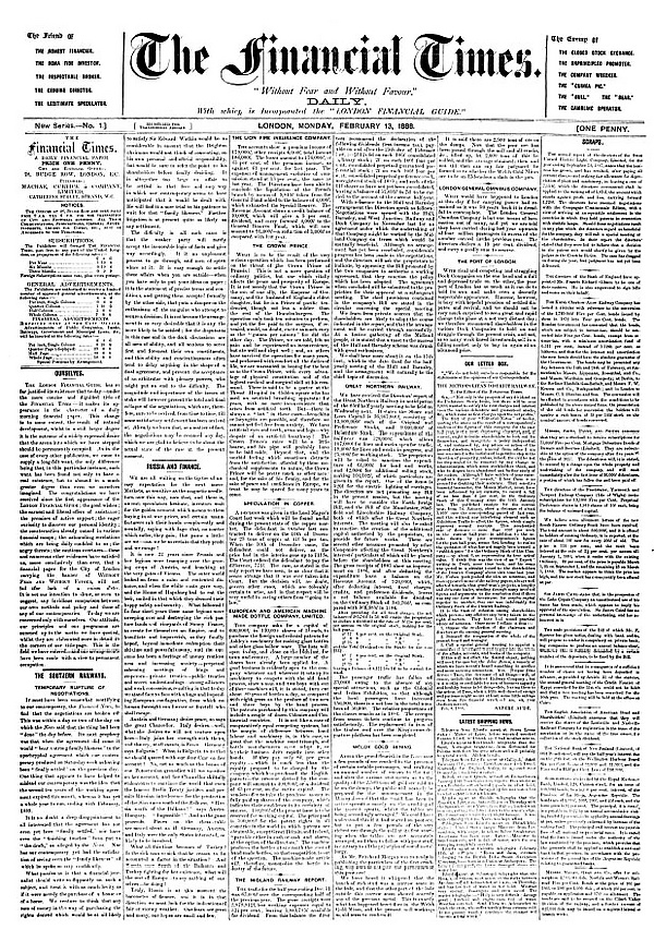 Основанная в 1888 году братьями Шериданами, «Financial Times» в течение многих лет соревновалась с четырьмя другими газетами, посвящёнными финансам.