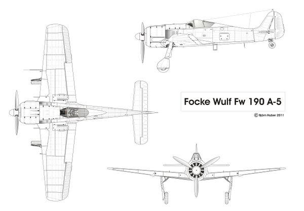 Серия А-5 истребитель-штурмовик. Для защиты лётчика при атаках наземных целей помимо переднего бронестекла толщиной 50 мм, бронеспинки толщиной 8 мм и сдвижного бронезаголовника 13,5 мм, была установлена броня по внешним обводам фюзеляжа: снизу, под мотором — 6 мм, под фюзеляжем до заднего обреза кабины — 5 мм, имелась бортовая броня кабины пилота. Все 18 плит крепились непосредственно на фюзеляж, составляя его обтекаемую поверхность. Общая масса брони составляла 310 кг или 7,6 процентов от нормальной взлётной массы самолёта. В 1942 г. в результате испытаний FW-190A-3 выяснилось, что установка дополнительного оборудования может заметно сместить центр тяжести самолёта. Чтобы компенсировать смещение, было решено удлинить мотораму, в результате чего общая длина самолёта увеличилась до 9100 мм. Первые машины, получившие обозначение FW-190A-5, вступили в строй в ноябре 1942 года. Предназначались для оказания непосредственной поддержки на поле боя.