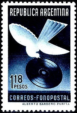 Этот вид услуги был продемонстрирован на XI Всемирный почтовый конгресс в Буэнос-Айресе в 1939 году. Позднее почтовое ведомство Аргентины выпустило три почтовых марки для оплаты пересылки аудиозаписей[1].