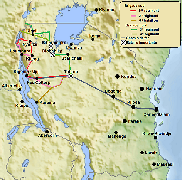 Во время Первой мировой войны войска находились под командованием Шарля Тобёра. В 1916 году он был назначен начальником военной администрации территории Германской Восточной Африки, оккупированной Force Publique.