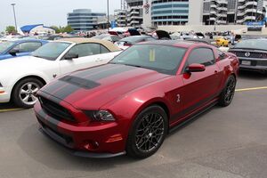 Весной 2012 года были представлены версии 2013 модельного года: V6 и GT получили воздухозаборники и решетки как у версии GT500 2011 года. Двигатель версии GT увеличил мощность на 8 л. с. (до 420 л. с. (313 кВт)). Shelby GT500 получил новый двигатель 5.8L V8 мощностью 662 л. с. (494 кВт) (что являлось рекордом для двигателей V8 до выхода драговой модификации Dodge Challenger Demon мощностью 740 л.с.)[29] и максимальную скорость более 320 км/ч. Светодиодные передние фонари теперь стандарт, а не опция. 6-ступенчатый автомат получил возможность ручного переключения (опционально).