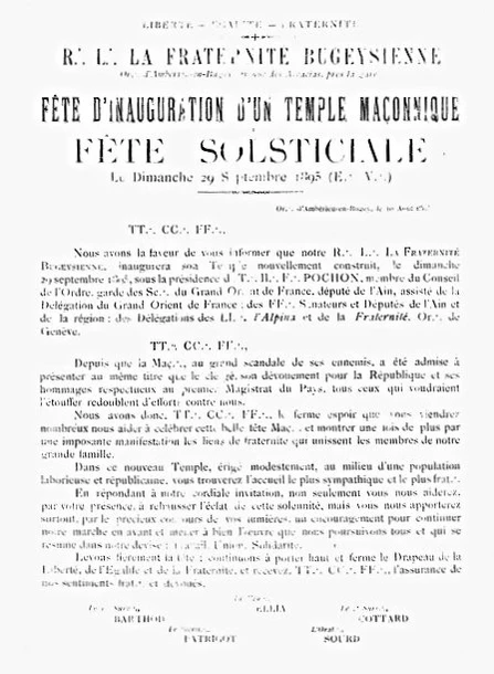 Ложа Fraternité bugeysienne была учреждена в 1782 году в Лионе под эгидой Великого востока Франции (ВВФ).