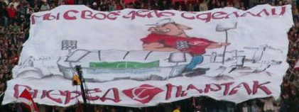 - на футбольных матчах: стадион «Локомотив» — северная трибуна; БСА «Лужники» — трибуна B; стадион «Спартак» — северная трибуна (трибуна В);