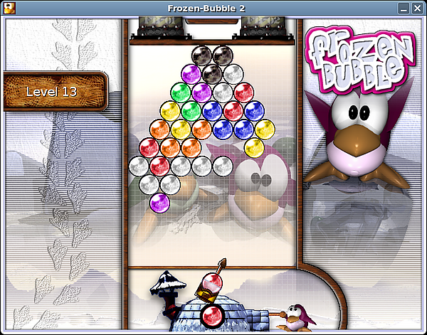 Frozen Bubble — свободная компьютерная игра для Linux, клон игры Puzzle Bobble (англ.). Есть порт под Windows, но требует установки ActiveStatePerl и SDL Perl. Портирована под Android и Symbian, доступна только кампания из 100 уровней.