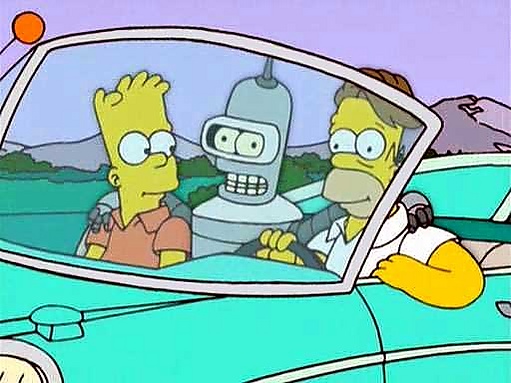 - Название эпизода пародирует название мультсериала «Футурама», также в серии появляется робот Бендер из этого мультфильма[3]. В эпизоде Simpsorama Бендер прилетит из будущего, чтобы убить Гомера.