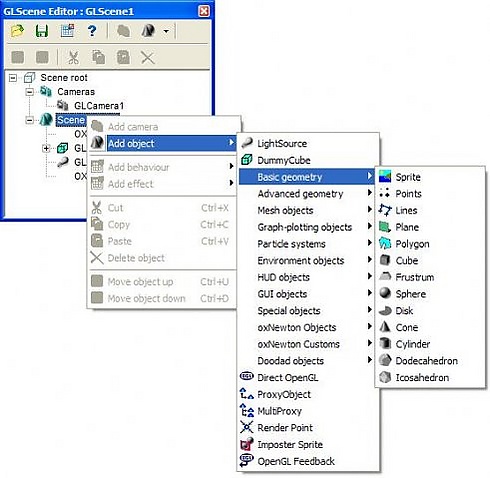 GLScene позволяет программистам создавать 3D-объекты OpenGL в design-time с использованием интерфейса, показанного на картинке. Большое количество объектов и дополнительных визуальных компонентов VCL помогает программистам создавать графические 3D-приложения для Delphi, C++Builder и Lazarus.