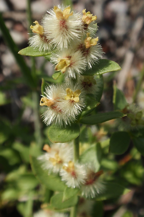 Galium grayanum — многолетнее травянистое растение, образующее зелёные ковровые заросли среди каменистых горных склонов. Его стелющиеся стебли могут достигать около 20 сантиметров в длину. Листья расположены мутовками по четыре штуки на стебле. Они овальные, заострённые, слегка мясистые и бархатистые. Растение раздельнополое, но мужские и женские цветки схожи по внешнему виду, с маленькими желтоватыми или красноватыми венчиками на концах листовых стеблей. Плод — орешек с очень длинными волосками. Когда растение плодоносит, оно приобретает пушистый вид[3].