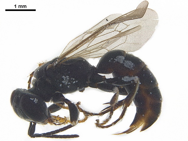 Роющие осы среднего размера (менее 1 см). В передних крыльях две кубитальные ячейки и две замкнутые дискоидальные ячейки. Задние оцеллии сближаются сзади, уплощены, удлинённые[4]. Гнездятся в земле, где самки устраивают одноячейковые гнёзда. Охотятся на прямокрылых (Tridactilidae и другие)[1].