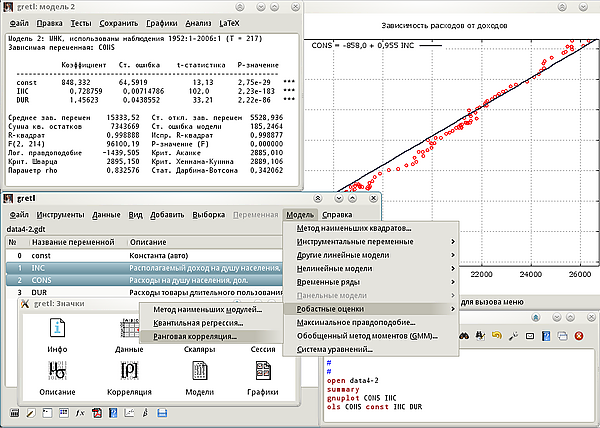- Интеграция с R, GNU Octave и Ox для дальнейшего анализа данных.