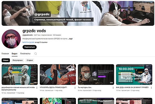 Наиболее популярным стал канал grpzdc на Twitch (по состоянию на январь 2025 года — заблокирован), где блогер делал стримы на политические темы.