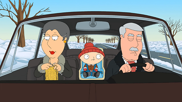 Лоис отправляет Стьюи погостить к бабушке и дедушке. По дороге на автомобиле Стьюи замечает, что Картер заснул за рулем. Не проходит и минуты — машина врезается в дерево, Картера отправляют в больницу.
