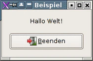 Приведенная выше программа создаст окно с кнопкой «Hello World». При нажатии на кнопку «Hello world» выводится на стандартный вывод.