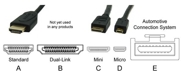Разъёмы HDMI содержат 19 контактов и чаще всего исполняются в трёх форм-факторах[11]: