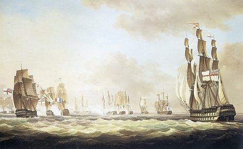 Французский Ça Ira столкнулся с Victoire, следующим впереди, и снёс себе фор- и грот- стеньги, что позволило капитану Фримантлу (англ. Freemantle) на HMS Inconstant встать с ним борт к борту и начать бой. К нему присоединились HMS Captain и Agamemnon, нападавший на Ça Ira более двух часов, пока не появились несколько французских кораблей в поддержку, и адмирал Хотэм не поднял сигнал отзыва.