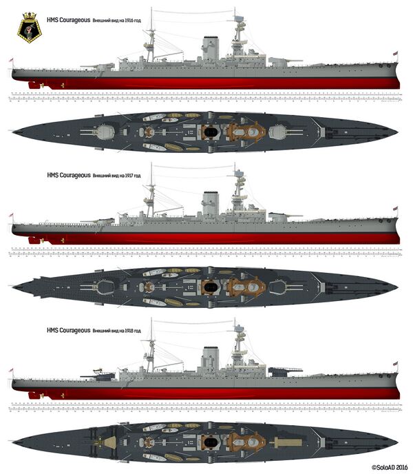 Уже в ходе строительства в июне 1916 года было впервые выдвинуто предложение о переделке «Корейджеса» и «Глориеса» в гидроавианосцы. Но отсутствие как чёткого представления, каких боевых характеристик хотели получить от этих кораблей, так и конструктивного плана по переоборудованию повлияли на принятие решения о продолжения строительства в рамках существующего проекта.