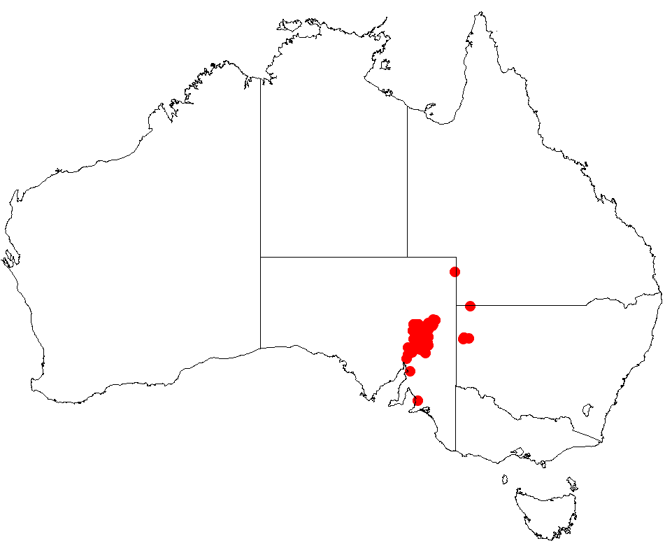 Эта хакея является эндемичной для района в западном Новом Южном Уэльсе, хребта Флиндерс и округа Дальний Север Южной Австралии. Растение часто растёт на скалистых склонах и вокруг них, а также вдоль водотоков на каменистых или песчаных почвах. В основном распространено в Южной Австралии, но изредка встречается в Новом Южном Уэльсе[3][5].