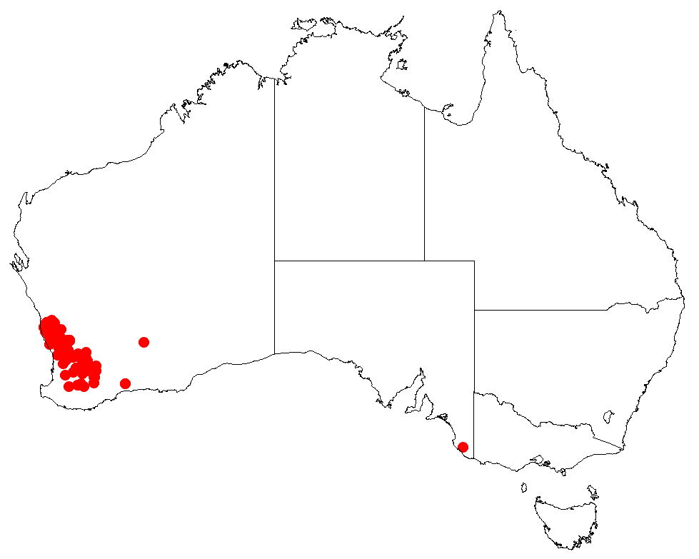 | Ареал Hakea hastata. | |