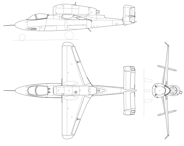 - Не 162В-2 — от Не 162В отличался тем, что вместо двух двигателей As 014 устанавливался один As 044, тягой 500 кгс.