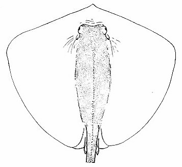 Грудные плавники этих скатов срастаются с головой, образуя ромбовидный плоский диск, ширина которого в 1,1—1,2 раза превышает длину, края плавников («крыльев») широко закруглены. Треугольное рыло формирует тупой угол, его заострённый кончик выступает за края диска. Позади среднего размера глаз расположены овальные брызгальца, которые превышают их по размеру. На вентральной поверхности диска имеются 5 пар жаберных щелей, рот и тонкие, длинные ноздри. Между ноздрями пролегает лоскут кожи с бахромчатым нижним краем. Рот изогнут в виде дуги, на дне ротовой полости присутствуют 4 отростка. Мелкие притуплённые зубы выстроены в шахматном порядке и образуют плоскую поверхность[4][6].