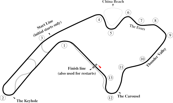 | Круги | 85 (308,881 км, 191,93 миль) |