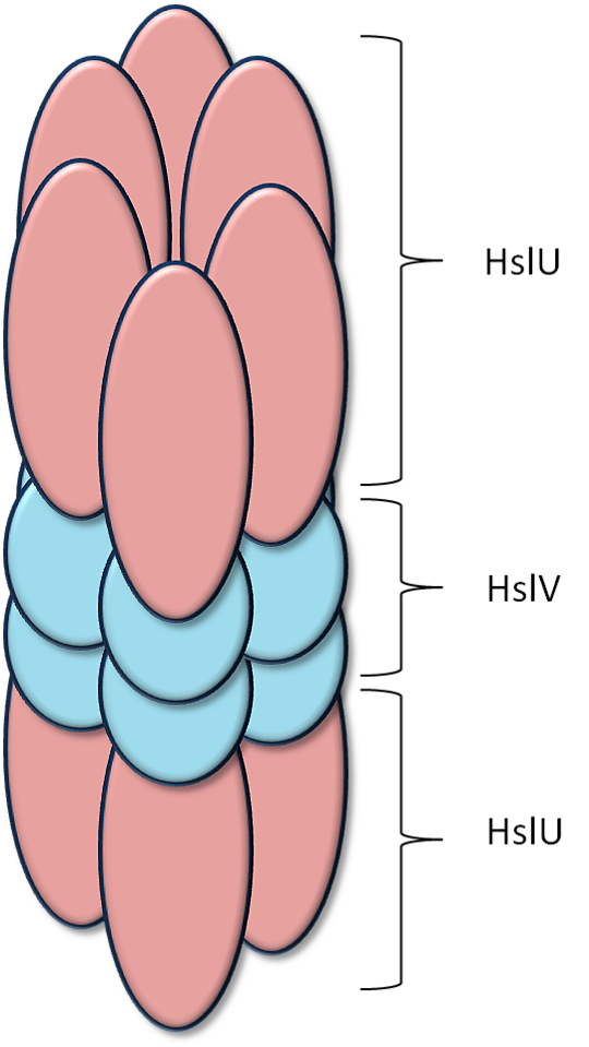 У E. coli субстратная специфичность HslVU во многом пересекается со специфичностью Lon[14]. Также как и Lon, HslVU распознаёт и разрушает неправильно свёрнутые или аггрегированные белки, особенно при тепловом шоке[15]. Два классических субстрата Lon — ингибитор клеточного деления SulA и регулятора синтеза бактериальной капсулы RcsA, являются также субстратами для HslVU[16],[17]. HslVU также способен разрушать белки с SsrA-хвостом[18]. Ещё одним субстратом для HslVU является σ32 — сигма фактор, отвечающий за транскрипцию белков теплового шока[15].