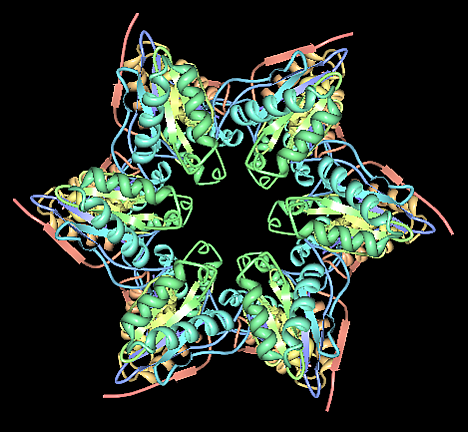 HslVU (HslUV, ClpYQ) — протеаза из группы АТФ-зависимых протеаз, присутствующая у многих бактерий, включая Escherichii coli и Bacillus subtilis. Состоит из двух компонентов, HslU (ClpY) — АТФ-зависимый шаперон и активатор протеолитической активности у HslV (ClpQ) — собственно протеазы. Активный комплекс состоит из двух колец из шести белковых субъединиц HslV, соединённых вместе, и по кольцу из шести белковых субъединиц HslU с каждой стороны. Кольца соединены вместе, образуя полый цилиндр, при этом кольца HslU находятся со внешней стороны. Как и у всех других АТФ-зависимых протеаз, активный сайт находится внутри цилиндра, и полипептидный субстрат должен быть развёрнут и активно перемещён внутрь для того, чтобы произошел протеолиз[1],[2],[3],[4].