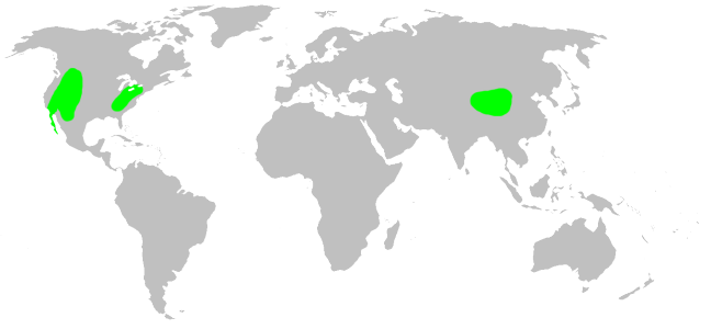 Насчитывают 12 видов, обитающих в Северной Америке и Китае.
