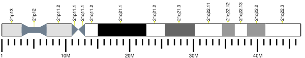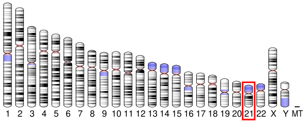 - Hattori M., Fujiyama A., Taylor T. D., etal. The DNA sequence of human chromosome 21 (англ.) // Nature. — 2000. — Vol. 405, no. 6784. — P. 311—319. — doi:10.1038/35012518. — PMID 10830953.