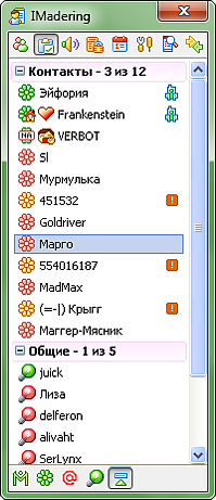 IMadering — мультипротокольный клиент мгновенного обмена сообщениями. Поддерживает протоколы ICQ, XMPP, MRA, Twitter.