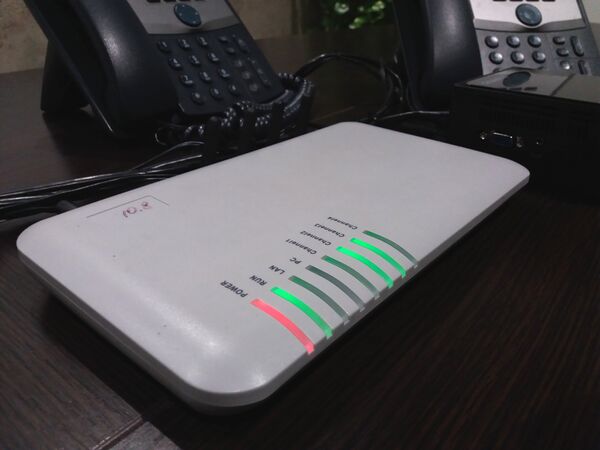 - Аппаратный VoIP-шлюз с возможностью подключения нескольких аналоговых телефонных аппаратов. Нередко обладает встроенными функциями мини-АТС и в этом случае может выполнять функции VoIP-сервера. VoIP-шлюз может быть подключён к другой аналоговой или цифровой телефонной станции на FXS-порт посредством стандартного телефонного FXO-интерфейса.