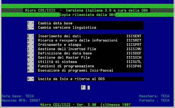 - К 1985 году система была перенесена на мини- и персональные компьютеры, включая платформы VMS, UNIX[3] и MS-DOS[4], программа была переписана на Pascal. Это была навигационная СУБД, работавшая с базами данных собственного формата и программируемая на специализированном языке ISIS-Pascal, интерпретатор которого входил в состав пакета.