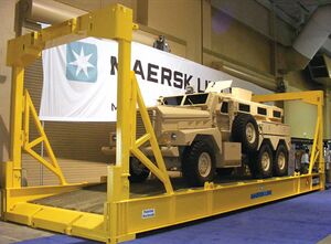 - FR (Flat Rack) — контейнер-платформа с боковыми стенками для негабаритных грузов и упрощения их загрузки. Максимальная открытость этого контейнера позволяет сокращать время при погрузочно-разгрузочных работах и производить их любым видом техники: от автопогрузчика до башенного крана. Такие контейнеры используются при перевозке больших модульных конструкций, спецтехники, военной техники, крупного производственного оборудования и т. д.. Flat Rack контейнеры существуют в модификациях: