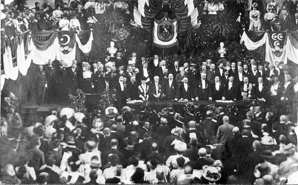 Всемирный конгресс эсперантистов 1908 года был первым конгрессом, состоявшимся после создания Всемирной ассоциации эсперанто в апреле 1908 года, и первым, в котором участвовали правительствительственные делегации, в частности, представитель министерства образования Японии Симура, представитель администрации президента США Т. Рузвельта Штрауб, официальный представитель правительства Филиппин Йеманс, официальный представитель законодательного собрания Барселоны Фредерик Пухула-и-Валлес, официальный делегат Международного комитета Красного Креста Адольф Муанье, официальный делегат Международного бюро мира Гастон Мош.