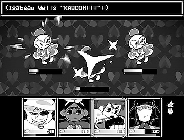 Бои проходят с видом от первого лица; используется система активного времени[1]. Каждый персонаж обладает уникальным типом атак, основанных на принципе «камень-ножницы-бумага», хотя также может применять атаки других типов. У врагов тоже есть свои типы, обычно обозначаемые жестами рук[2].[3] Если партия совершает пять подряд атак одного типа, активируется приём «джекпот» — специальная групповая атака, которая может вылечить союзников и нанести урон всем соперникам.[1][2]