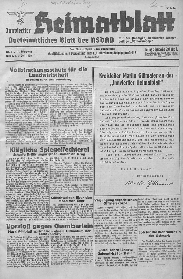 Innviertler Heimatblatt — еженедельная нацистская газета, издававшаяся в Рид-им-Иннкрайсе.