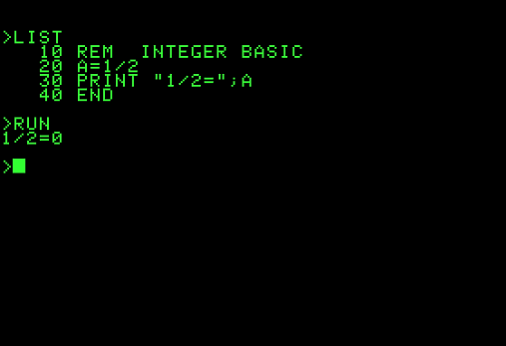 Чтобы пользователь не запутался, Integer BASIC и Applesoft BASIC выдавали на дисплей различные символы подсказки для приглашения к вводу — «>» и «]» соответственно.
