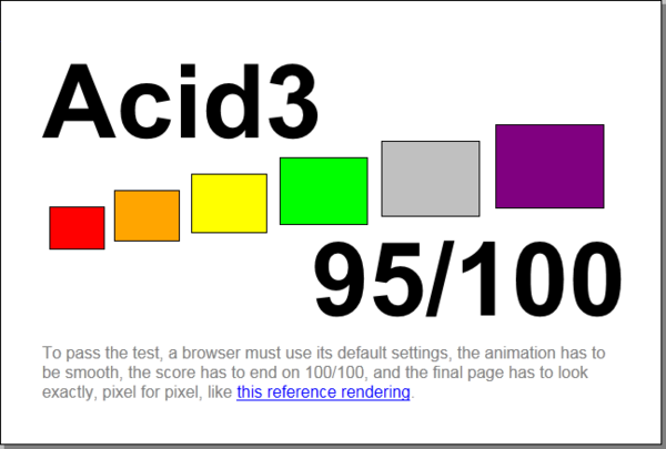 Internet Explorer 9 сначала получил оценку 95/100 на тесте Acid3, но после обновления в сентябре 2011 года его балл составил 100/100[30].