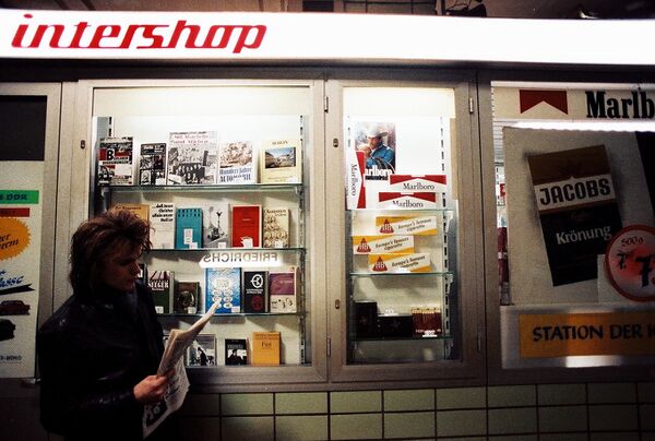 Государственная торговая организация Intershop была учреждена в ГДР 14 декабря 1962 года. Первые передвижные торговые палатки с логотипом Intershop появились в Восточном Берлине на вокзале Фридрихштрассе и реализовывали преимущественно сигареты по ценам гораздо выгоднее западноберлинских. Постепенно ассортимент товаров расширялся, в продаже появились алкогольные напитки. В 1962 году оборот Intershop составил 1 млн немецких марок.