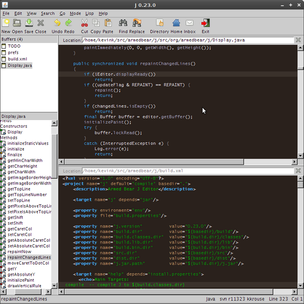 J — свободный текстовый редактор с открытым исходным кодом, разработанный для программистов. Распространяется под лицензией GNU General Public License.