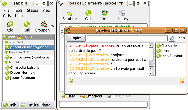 Jabbin — это кроссплатформенный XMPP-клиент с открытым исходным кодом, который позволяет обмениваться сообщениями, а также осуществлять бесплатно телефонные звонки ПК ↔ ПК, используя VoIP поверх протокола XMPP.