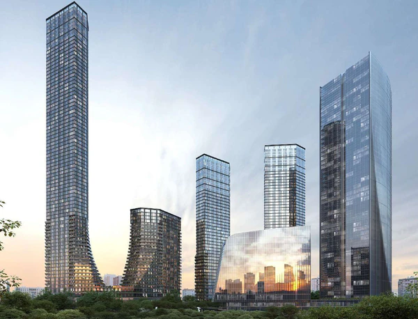 Согласно генеральному плану офисно-жилой комплекс будет состоять из шести зданий. Жилая часть комплекса представляет собой четыре высотных здания: Maya (84 этажа), Anna (57 этажей), Leo (47 этажей) и Mark (29 этажей). Как сообщал в декабре 2023 года председатель Москомархитектуры Иван Щербаков, два разноэтажных корпуса будут иметь единые стилобатную часть и автостоянку, добавив, что в корпусах первого этапа было запроектировано более 1,3 тыс. квартир от одной до четырёх комнат.[2]