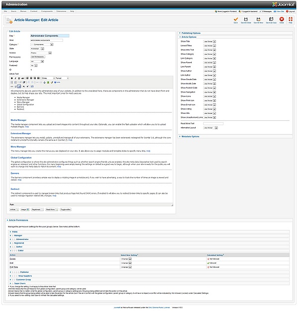 - Возможность ограничить доступ к определённым разделам сайта только для зарегистрированных пользователей, а с выходом Joomla! 1.6 доступ как к разделу, так и к определённому материалу с точностью до конкретной связи материал↔пользователь;