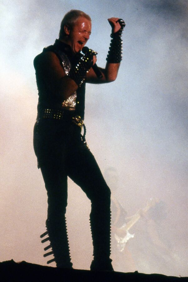 Часть сценического шоу Judas Priest часто включала появление на мотоцикле Harley-Davidson Роба Хэлфорда, одетого в байкерскую кожаную куртку и солнцезащитные очки. На шоу в Торонто в 1991 году он получил серьёзный удар во время подъёма на сцену на мотоцикле: произошло столкновение с подъёмником барабанной установки, скрытым за облаками сухого льда. Несмотря на полученную травму и временную потерю сознания, вокалист отыграл весь концерт перед госпитализацией.