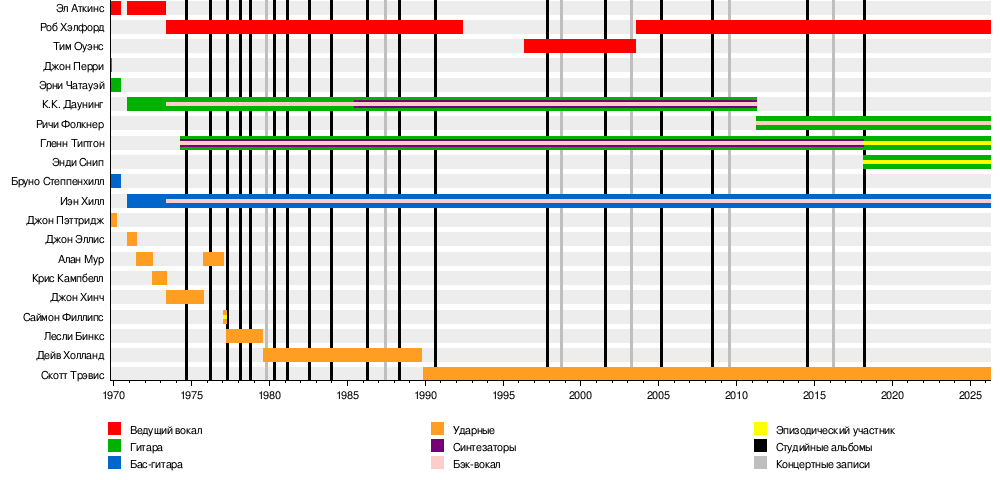- К. К. Даунинг — гитара, синтезатор, бэк-вокал (1970—2011)