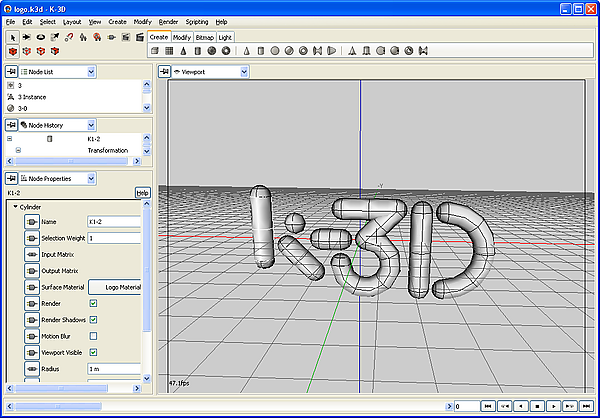 - Предоставляет возможность написания скриптов с использованием Python и встроенного минималистического скриптового движка — K3DScript (для написания макросов и создания собственных обучающих руководств).