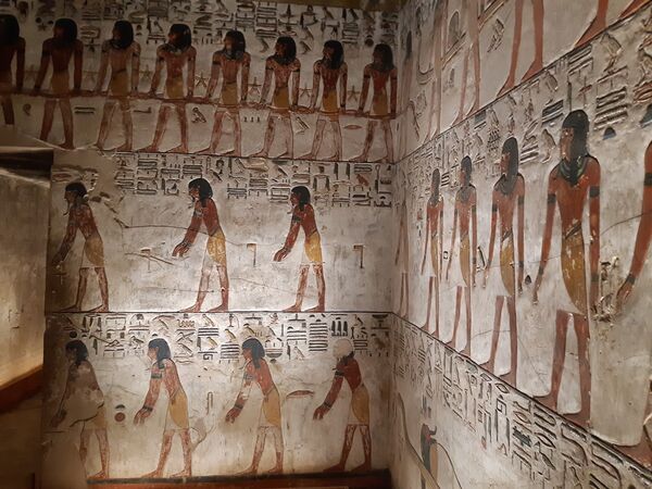 Стены гробницы целиком расписаны различными сценами на тему загробного мира, потрясающими уровнем их исполнения.