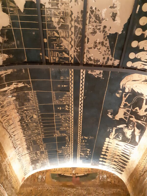 Рядом расположены ещё две расписанные камеры. В самой большой рядом с религиозными гимнами изображён ряд испытаний души: огонь, меч, ядовитые змеи. Финальная цель — «звёздное жилище» на своде «золотой залы» (залы саркофага) составлено из всех египтянам известных созвездий, из планет и деканов с указанием восхода светил.